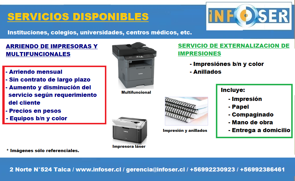 Es una empresa Talquina de Informática y Tecnología con 29 años de experiencia en el mercado, especializada en los últimos años en Arriendo de equipos de Impresión y Centros de Fotocopiado.